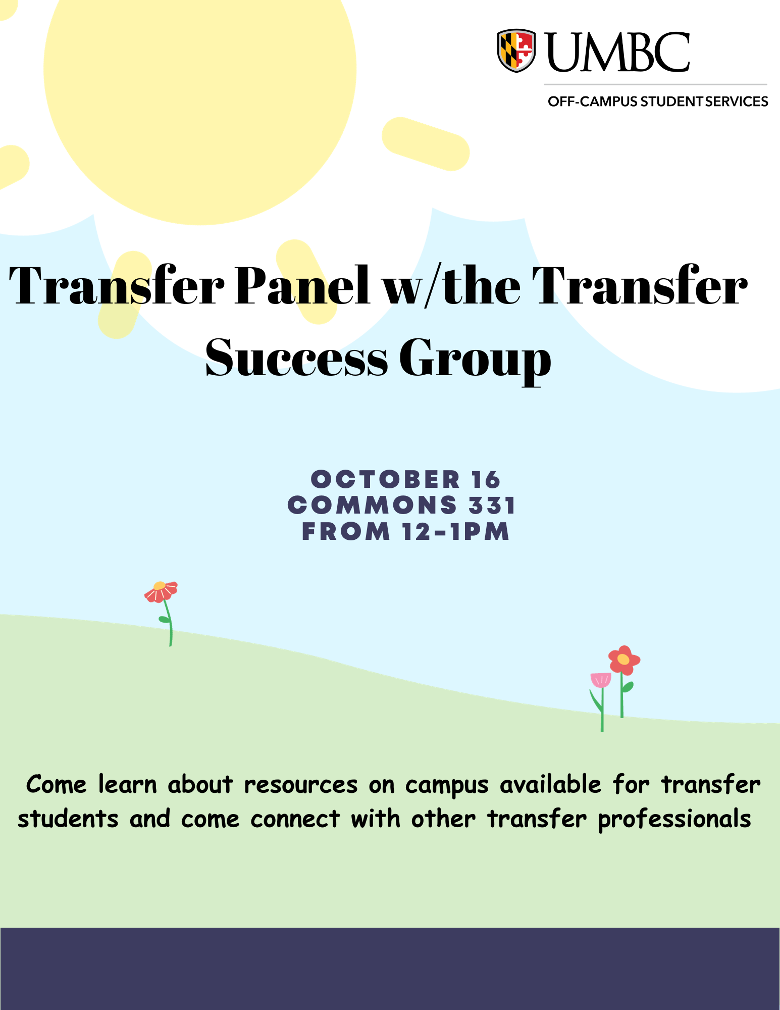 Calling all transfer students! Join OCSS for a Transfer Panel w/ the Transfer Success Group! Come learn about resources on campus available to transfer students and connect with transfer professionals. Hope to see you all there!!