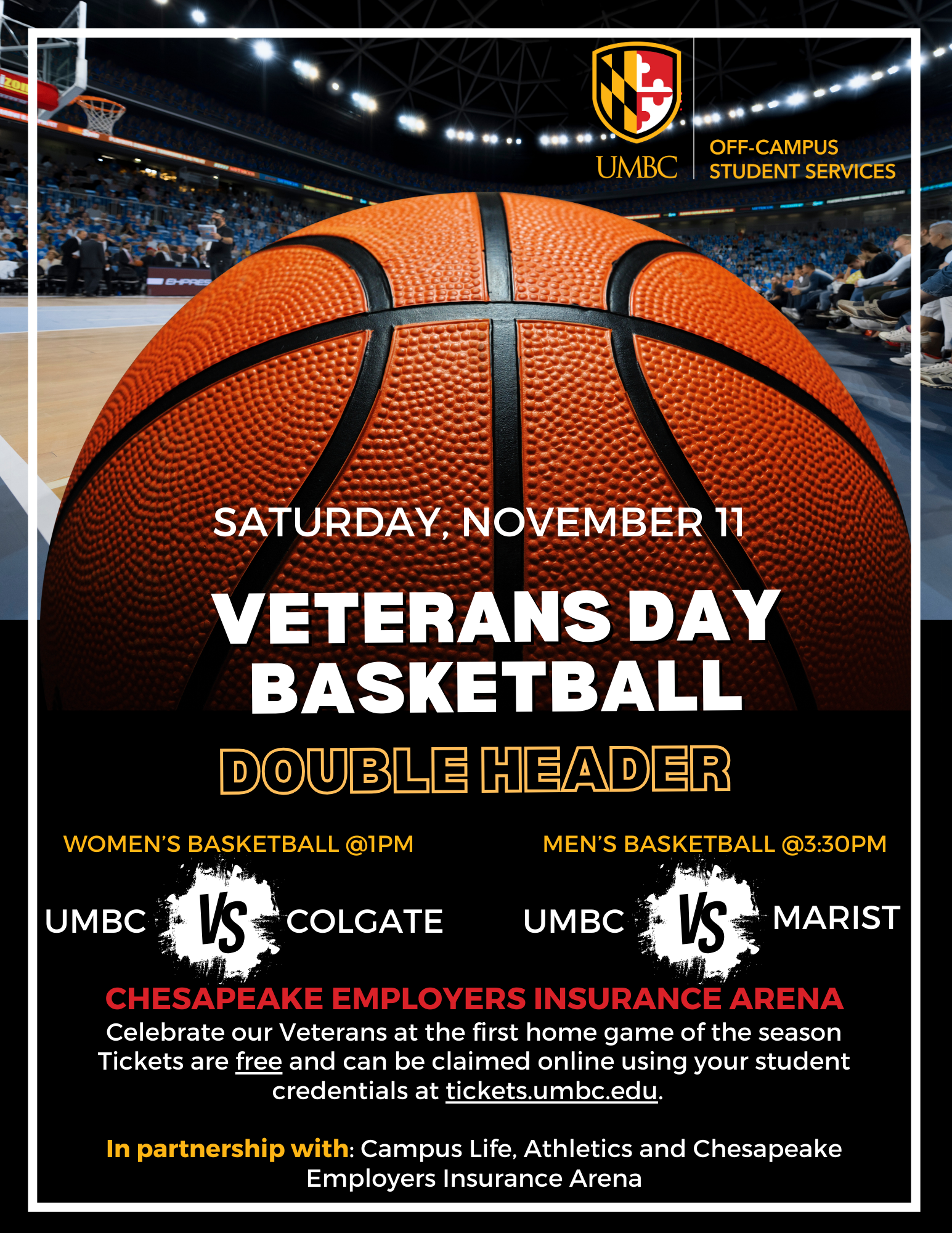 Looking for Veterans Day Plans? OCSS and Athletics has you covered! Veterans, Dependents and Student Service Members, join us on Veterans Day for a Double Header Basketball game which will include: free tickets, free games and prizes and free raffles!! Please claim your student ticket by clicking the link below. Make sure to use your student credentials in order to claim your ticket! Veterans will also be provided one additional free ticket which can be claimed at Box Office. We look forward to seeing you there!!