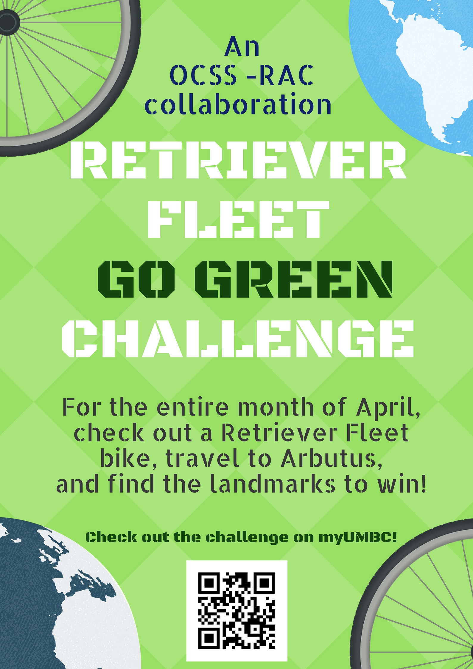 Retriever Fleet is UMBC's free day bike rental service headquartered in the RAC! For this challenge, you must rent out a bike from the RAC, travel to Arbutus (East Drive), and take pictures of at least 5 specific landmarks throughout the area. Those who complete the challenge will be entered into raffles for special prizes such as Bluetooth earbuds, gift baskets, and gift cards to some local Arbutus hotspots!